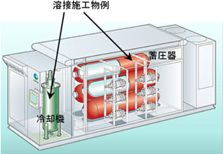 水素ステーションなど、高圧水素を使用する配管や貯槽の溶接に有効であり、特殊な溶加材を用いずに母材並みの強度が得られます。
